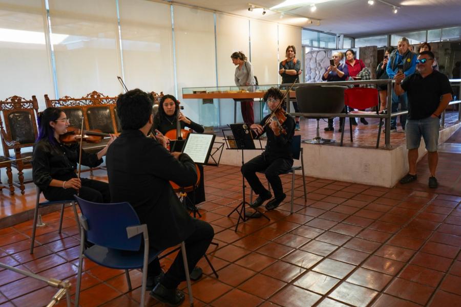 Fueron protagonistas especiales de las dos intervenciones musicales del sábado 24, el Cuarteto Nothofagus, ensamble de cuerdas nobles proveniente de la Región Metropolitana y de gira por la Región de Coquimbo. Durante la mañana, presentaron un repertorio dirigido a niñas y niños, mientras que por la tarde ofrecieron un programa de música clásica que acompañó la visita a la exhibición permanente del Museo Gabriela Mistral.