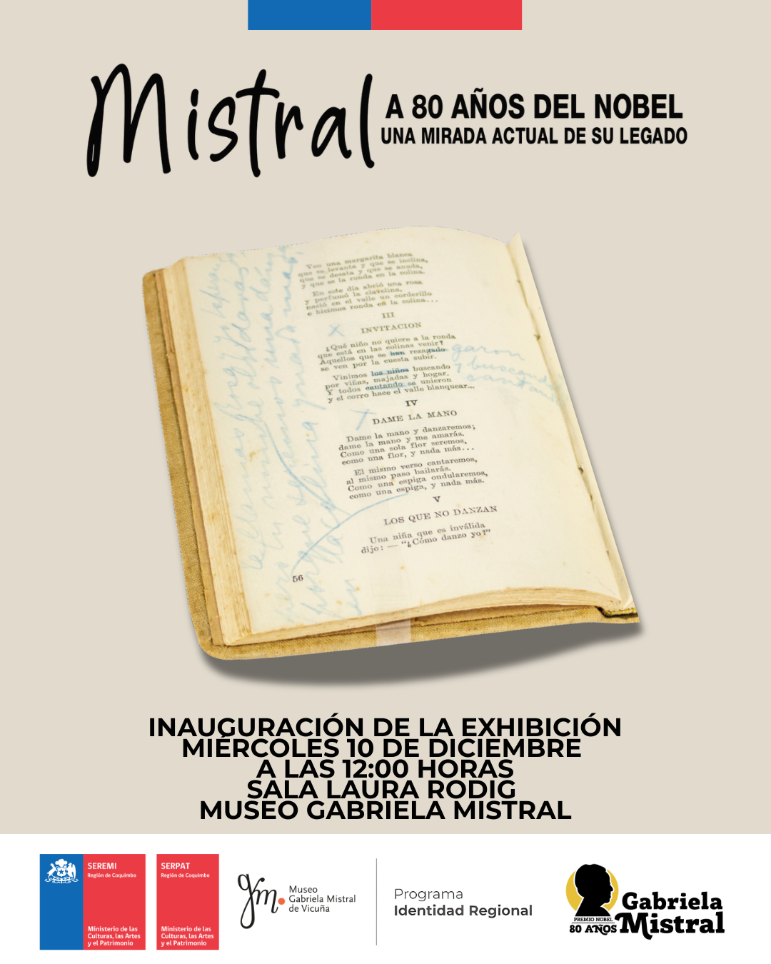 Museo Gabriela Mistral de Vicuña, ubicado en el sitio natal de la autora, convoca a la comunidad a celebrar los 80 años del Premio Nobel de Literatura otorgado a Gabriela Mistral con una jornada abierta que reúne arte, memoria y participación local. Este miércoles 10 de diciembre, la casa mistraliana se viste de gala para ofrecer un encuentro que pone en circulación las expresiones culturales del territorio y reconoce el trabajo desarrollado durante todo el año por el museo junto a escuelas, agrupaciones y creadoras y creadores de la zona.