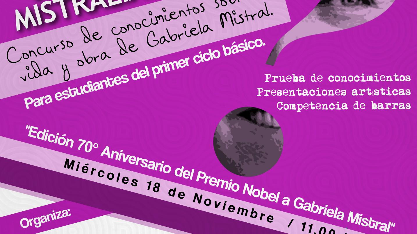 La más importante de las pruebas es la justa de conocimientos sobre la vida y la obra de la destacada poeta elquina. También se evaluará la originalidad y el buen comportamiento de las barras acompañantes. Durante los entretiempos de la justa de conocimientos, se generarán otras competencias como un concurso de declamación y una prueba de artes escénicas. En la primera, un representante de cada establecimiento participante deberá recitar un poema mistraliano. En la segunda prueba, un grupo de alumnos deberá desarrollar un cuadro teatral o dancístico sobre la efeméride del premio Nobel: la entrega de este galardón, el anuncio a Gabriela, la importancia de esta presea, etc.